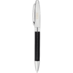Unique vinyl wrap lower barrel complemented with high shine chrome upper barrel. Pen includes premium black ink cartridge.