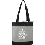 The Stone Convention Tote features an open main compartment with on-trend graphite front panel and durable nylon webbing handles with built-in elastic pen loop.