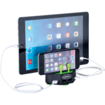 Looking to charge four devices at once? The ETL Certified Turf Charging Station is the answer to all of your charging needs. With four outputs you can charge four devices with a max output of 5V/6.8A. The top silicone portion holds up to three devices in place while charging. Includes a AC cord. This product has passed ETL standard.