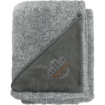 The long threaded, fuzzy and soft hand feel of this 240 gsm polyester fleece blanket is sure to warm your body and your spirit and makes an excellent addition to any home of office space. The multicolored threads give a heathered look to this extra soft and warm 50"x60"x3/8" unfolded blanket and the solid color triangle embroidery patch will allow you to professionally display and show off your company logo. Free embroidery run charges on up to 7,500 stitches. Folded dimensions are 15" x 12.5" x 6".
