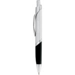 Satin silver enamel finish with smooth grip. Click action mechanism. Pen includes premium black ballpoint ink cartridge.