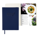 Elevate your brand with this semi custom bound journal. Features a built in elastic closure, ribbon page marker, document pocket on back cover and 80 sheets of cream lined paper. Customizable full color graphic page insert and blind deboss decoration included in pricing.