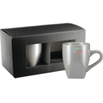 Includes 2 Cosmic ceramic mugs 1626-52. The Cosmic Ceramic Mug has a shiny outside finish and a cozy handle. Choose between color imprinting or our new cutting edge dishwasher safe laser decoration method "available on all colors except white". Leed's Exclusive 12oz. Gift Box is not decorated.