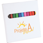 The 12 Piece Colored Pencil Set comes in a white paper box with a wide variety of pencil colors , including yellow, orange, red, pink, fuchsia, light blue, navy blue, lime green, dark green, brown, dark brown and black.