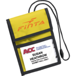 The Deluxe I.D. Badge Holder features a hook and loop closure, an inside zippered pocket and one open pocket. Great for tradeshows and employee badges, it also includes pen sleeves, an open pocket on the back and an adjustable breakaway lanyard. Window size: 3" H x 4-3/8" W. Pens are not included.