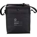 The 12-Can Lunch Cooler features PEVA insulation plus a zippered main compartment and a front open pocket and adjustable shoulder strap.