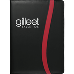 The Session Padfolio includes a refillable, 30 ruled page 8.5” x 11.5” notepad. With an inside file pocket, card slots and a pen loop. A pen is not included.